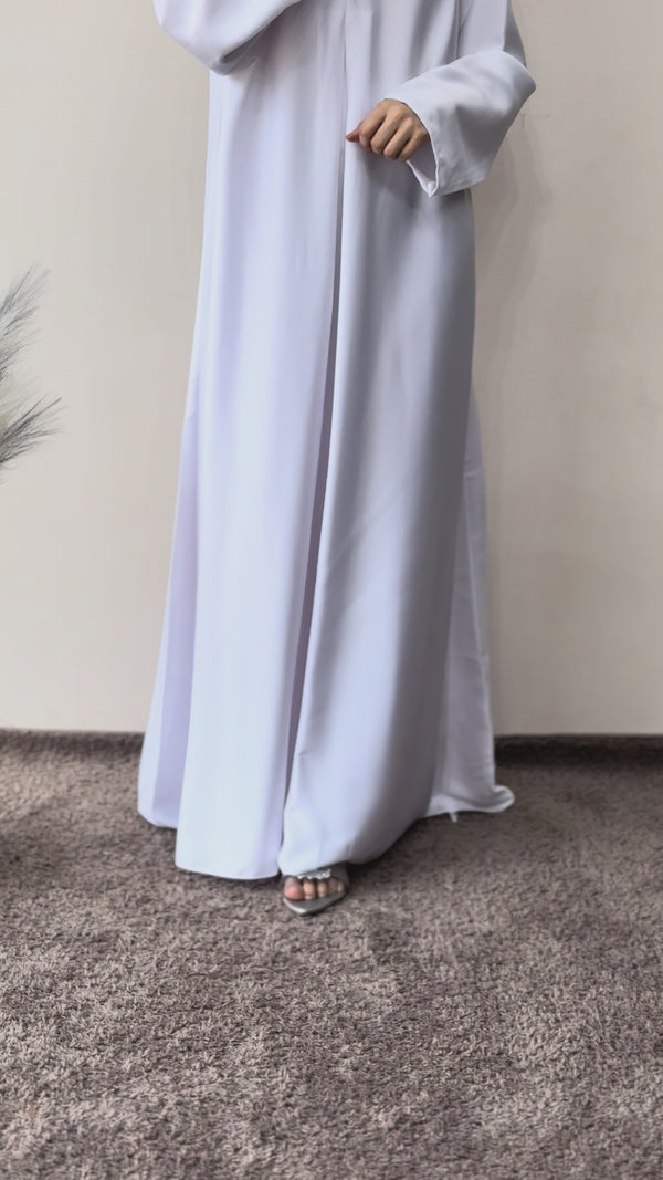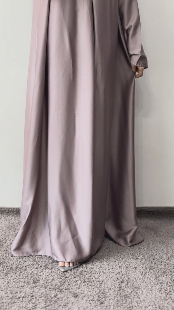 This flared maxi gown is crafted from Armani Silk and features three pairs of decorative stone buttons along the center front. The gown is designed with a semi-collar neckline and long normal sleeves. This garment has a comfortable loose fit, is feeding friendly, and is suitable for both casual and party wear.