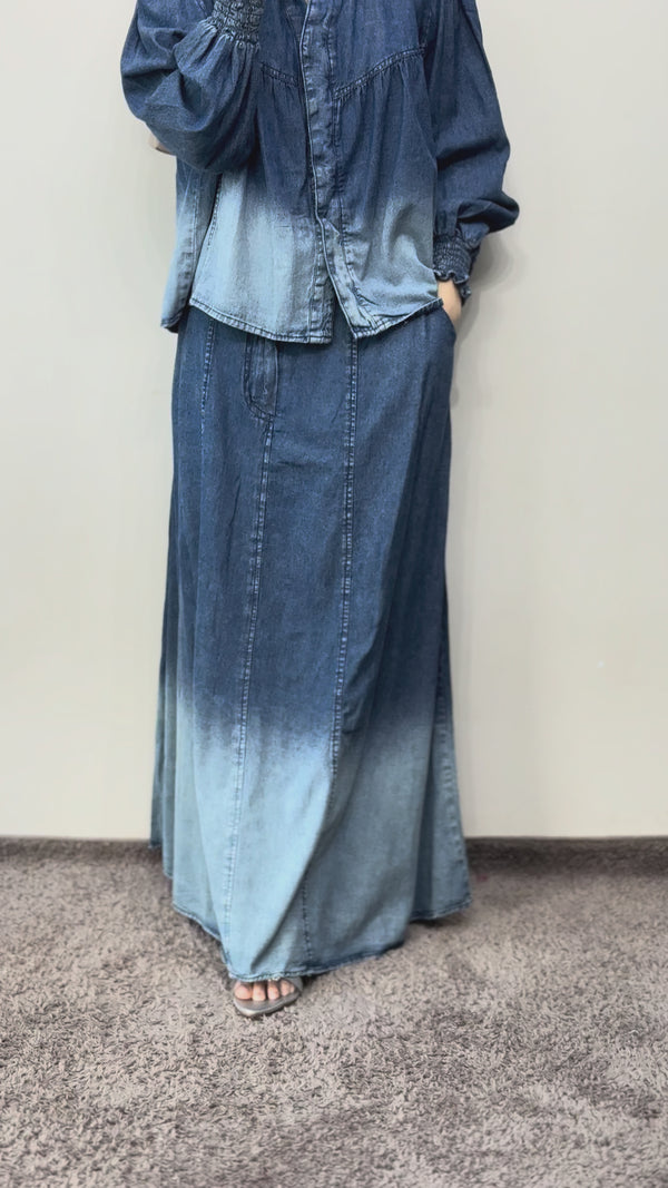This Denim Tie Dye Skirt & Top Co-ord is crafted from Soft Denim and offers a loose fit up to size 2XL. The Skirt and Top feature an eye-catching Tie Dye effect. The top has a Round neck/semi collar with smocked full sleeves, and the skirt has a Fit and Flare style. This feeding-friendly set is suitable for both casual and formal wear.