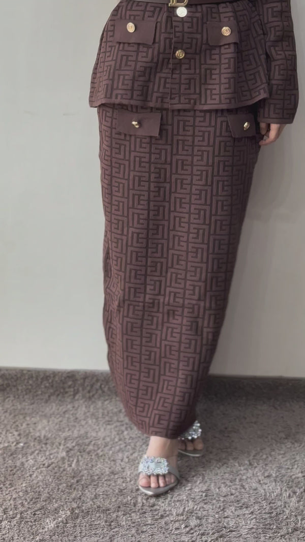 Knit Monogram Skirt & Top Set - Brown