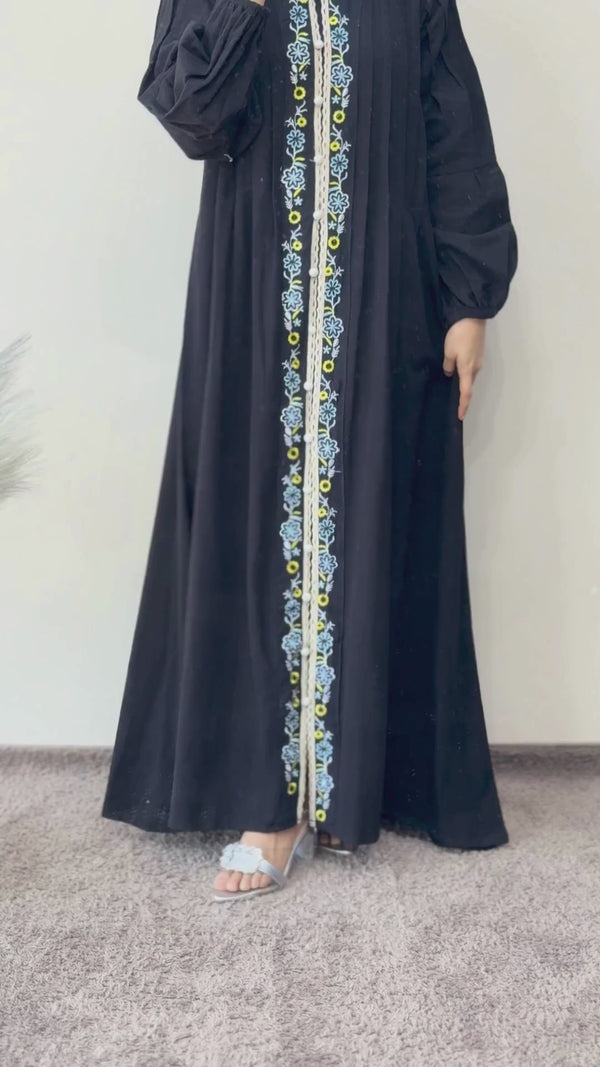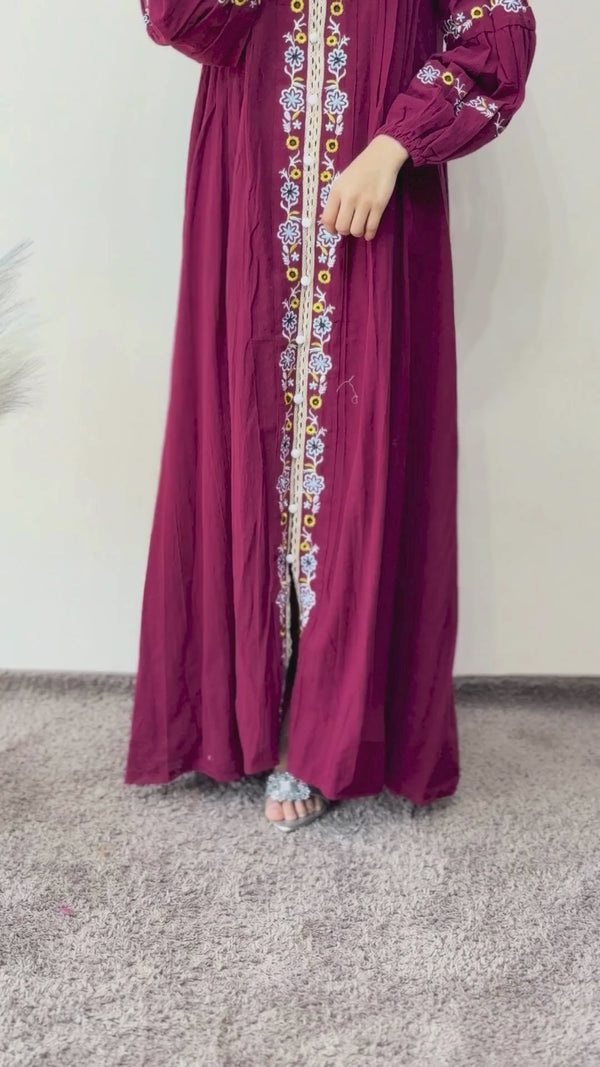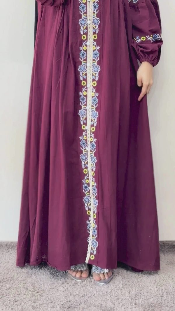 Linen Button Embroidered Gown