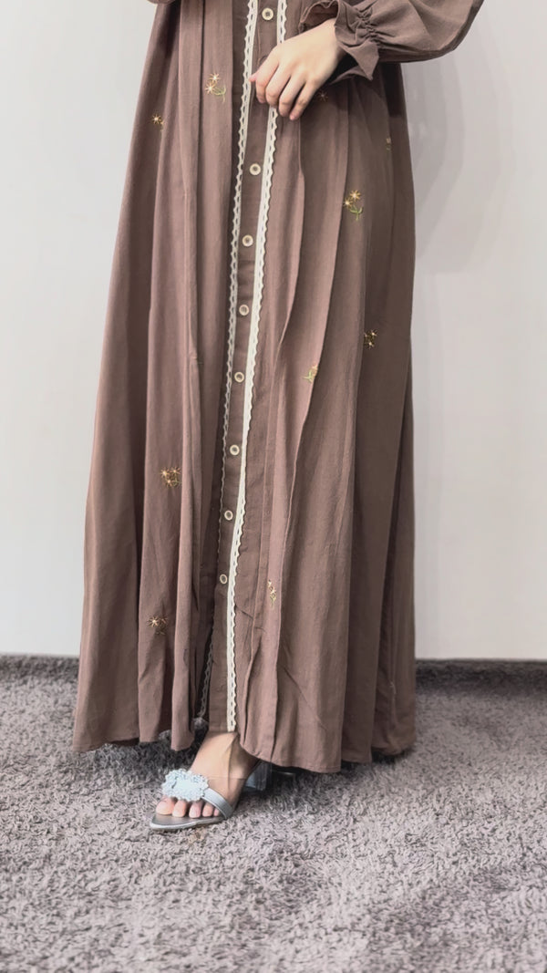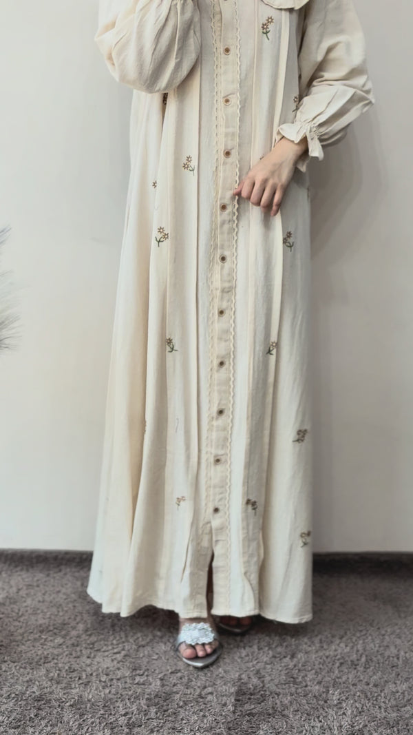 Linen Embroidered Collar Gown