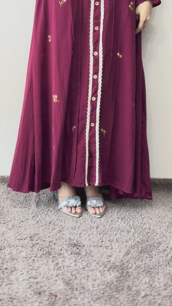 This Linen Embroidered Collar Gown is available in Cream, Red, and Brown, offering a loose fit up to size 3XL. Crafted from breathable Linen fabric, this Maxi Gown features a defined embroidered collar and an A-line silhouette. The design includes elegant Poet sleeves and is feeding-friendly. Suitable for both casual and formal wear.